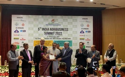 MoS Dr. Sanjeev K Balyan presents “India Agribusiness Awards 2022”award to NFDBIndia International Agro Trade and Technology Fair - 2022 organised Fair to showcase the development and modernisations achieved by key stakeholders in major sectors like food, agriculture, horticulture, animal husbandry, fisheries & allied.National Fisheries Development