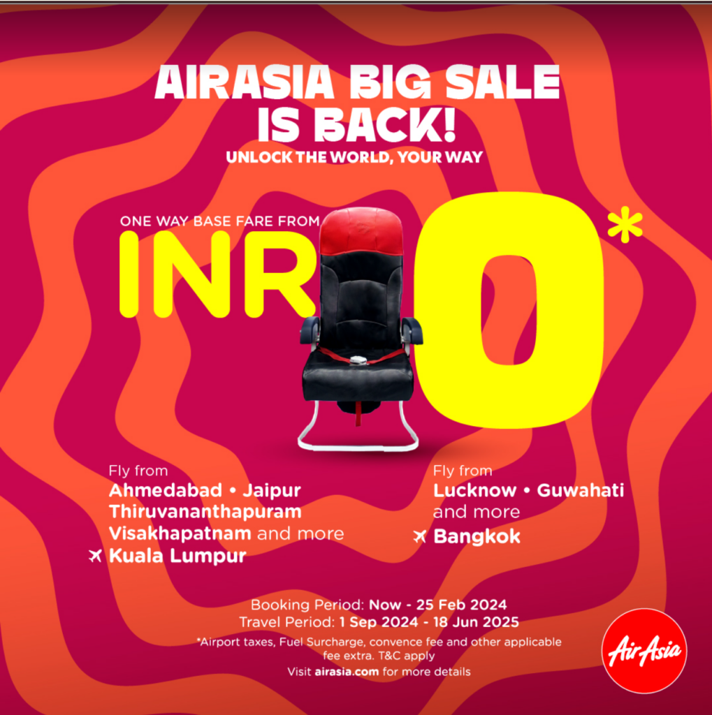 INDIA, 20 February 2024 ‒ AirAsia today announced the launch of its much anticipated Big Sale Campaign with INR0* base fare seats from several cities in India to Kuala Lumpur, Bangkok, and beyond!Unearth the wanderlust in you