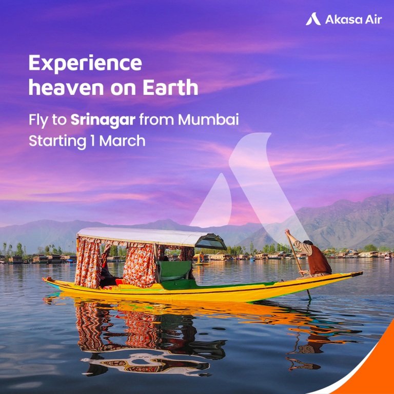 Srinagar, often called a ‘Paradise on Earth’, has witnessed a consistent increase in travel demand over the past years. The launch of operations on the route will cater to a blend of business and leisure travellers and will bolster connectivity, trade, and tourism in the region. With this launch, Akasa Air seamlessly connects Mumbai to 13 cities across India.