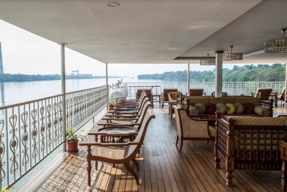 Built-in the mid-20th century modern style, the 18-suite Antara Ganga Vilas is a luxurious amalgamation of refined texture and simple elegance. Each room is inspired by a color-square painting by Bauhaus and Black Mountain designer-teacher Josef Albers and all fabrics, linen, furniture and serveware are made in India, and some are even made along the river. Large ceiling-to-floor guillotine windows bring enchanting river views into the ship’s expansive spaces, further enhancing the feeling of moving within and yet observing a riverscape in motion.