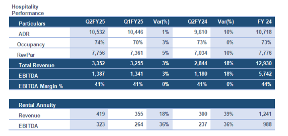 “We are pleased to report another outstanding quarter of growth, driven by positive momentum in room rates and backed by strong EBITDA margins, an indication that our strategic initiatives and efforts to drive operational excellence are paying off. Our upcoming 11-acre beachfront development in Goa is set to transform the region over the next three years. As we enter the second half of the year, we are confident in maintaining this upward trajectory to maximise returns across our diverse portfolio.”