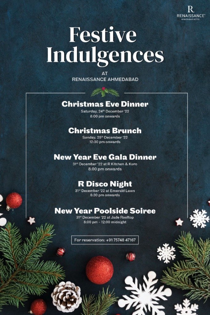 Kick starting the season’s festivities, Renaissance Ahmedabad has aligned a joyful calendar of Christmas activities for people of all ages. Starting from the annual Christmas Tree Lighting Ceremony for the little ones to an elegant Christmas Eve Dinner, followed by a sumptuous Christmas Day Brunch and finally ending the year on a joyful note with New Year Party and Gala Dinner, the hotel has a plethora of festive events lined up for all to enjoy.