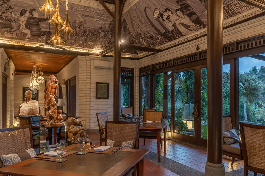 Inside Panen Padi, guests are introduced to the founder’s history through a mural that adorns the restaurant’s ceiling. The artwork takes visitors on his journey from youth to his golden years, with imagery of Bali, the property, and from his time in the Netherlands.