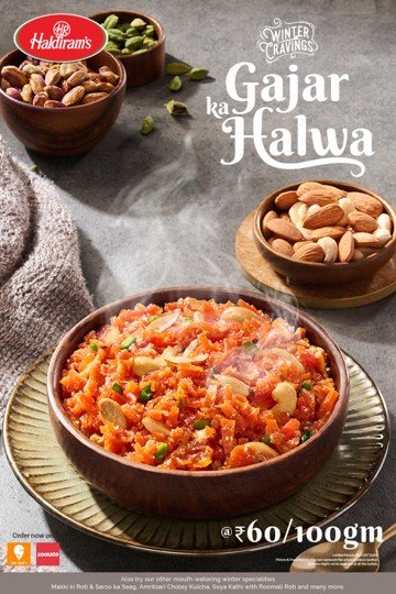 “The winter season is all about food indulgence. People look for hot, tasty, and mouthwatering food. Haldiram is a one stop shop which provides the variety and food with authentic ingredients to meet the need of all customers. We cater piping hot food that’s packed with flavors. What better than turning to popular North-Indian cuisines like “Sarson ka Saag n Makki ki Roti”, and ease food like Chatpate “Purani Dilli ke Chole chawal” and “Amritsari Kulche”. Treasured for their velvety smooth texture and aromatic sensorial experience, we have introduced the Winter Cravings menu to help the customers savor their evergreen comfort foods and end their meal with “Gajar Ka halwa” while they are out shopping or in the comfort of their homes, this winter season.”