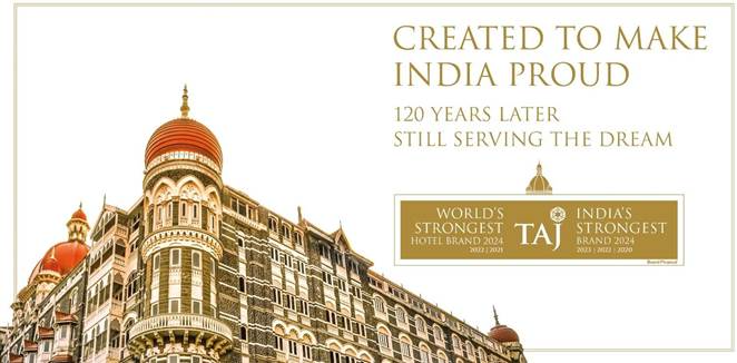 IHCL’s iconic brand Taj has been recognized as India’s Strongest Brand across sectors for the fourth time and as the World’s Strongest Hotel Brand for the third time by Brand Finance.