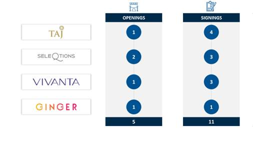 “Keeping pace with signings, IHCL opened 5 new hotels in the quarter taking the total operating hotels to 191 across brands. IHCL added to its wellness offering with Taj Gandhinagar Resort & Spa and forayed into the temple cities of Jammu and Bhubaneshwar. Kerala’s commercial capital, Kochi will now bring the Ginger experience to a new micro market at MG Road and India’s sunshine state, Goa with multiple IHCL brands will now offer yet another location in Anjuna.”
