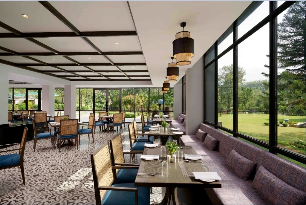 With careful consideration of the existing building’s robust design language, Aashish V Anand and his team devised a brilliant strategy for the redesign. They artfully crafted a new structure that seamlessly integrated with the hotel’s original architecture. Their primary objective was to create an interactive space that would establish a strong connection with the outdoors, providing guests with mesmerizing views of the magnificent TRIKUTA peaks.