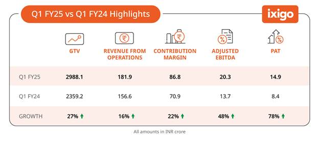 ixigo posts Rs. 14.9 Cr Profit (+78% YoY), Rs. 20.3 Cr Adjusted EBITDA (+48% YoY), and Rs. 181.9 Cr Revenue (+16% YoY) in Q1 FY25
