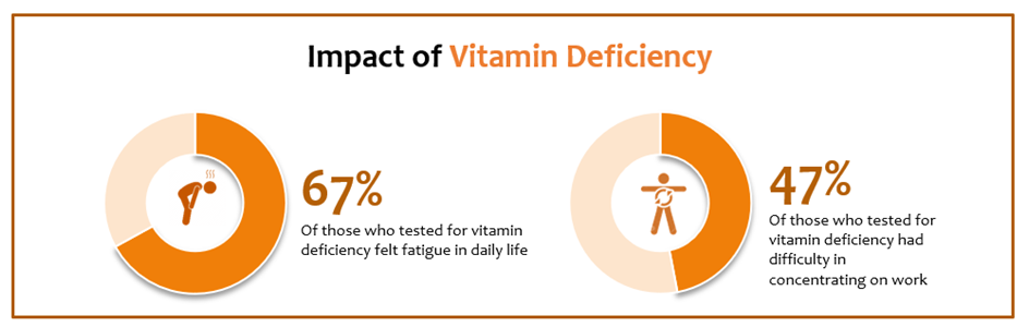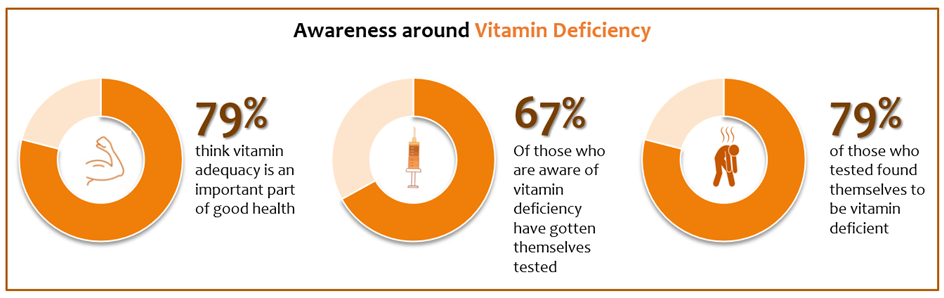 79% of Indians who tested for vitamin deficiency in surveyed key markets confirmed to have Vitamin deficiency;