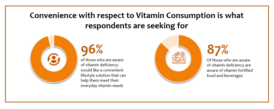 Highlights from the survey:96% of the respondents who are aware of vitamin deficiencyseek convenient Vitamin solutions