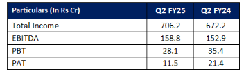 - Total Income at Rs. 706 Cr (+5% YoY)