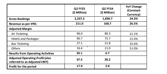 - Revenue as per IFRS grew by 26.5% YoY in constant currency to $211.0 million in Q2 FY25 from $168.7 million in Q2 FY24.