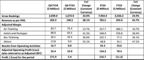 - Adjusted Operating Profit registered growth of 70.4% YoY and reached $32.4 million in Q4 FY24 compared to $19.0 million in Q4 FY23.