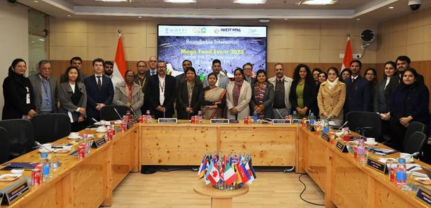 Secretary, FPI, Smt Anita Praveen chaired a roundtable interaction with international industry associations / business chambers / trade agencies on the activities related to Mega Food Event 2023 on Thursday, 12th January 2023 at Vigyan Bhawan Annexe, New Delhi. This was the fourth session in the series of roundtable interactions that are being held with key stakeholders such as major agri-food companies, resident commissioners of States and UTs, Central Ministries and Departments, and other relevant stakeholders. The roundtable witnessed participation from representatives of 13 countries.