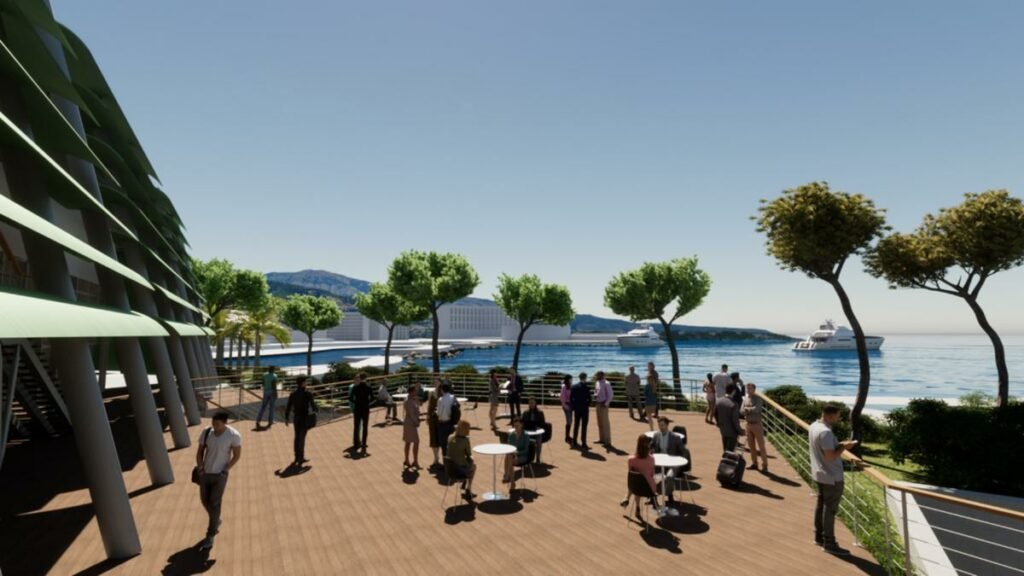 This eco-district project will offer housing, a car park, shops, restaurants, a pine tree forest and a marina. Answering to very strict environmental requirements, it is part of the Principality’s objective to achieve carbon neutrality by 2050. Also note that a part of the electricity powered by 1,500 photovoltaic modules installed on its roof since 2019, allows the Grimaldi Forum to supply energy to the surrounding buildings and this new district.
