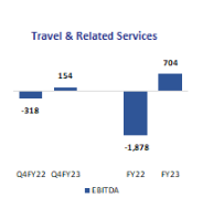 - FY23: Travel turnover grew by 213% YoY; surpassing pre pandemic levels for the quarter