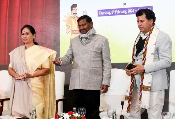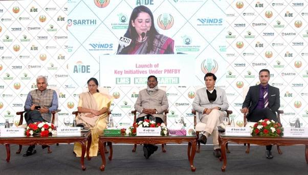 Union Minister of Agriculture and Farmers Welfare and Tribal Affairs Shri Arjun Munda launched the centralized “Kisan Rakshak Helpline 14447 and Portal”, Agri-Insurance Sandbox Framework Platform SARTHI and Learning Management System (LMS) Platform for the farming community under the Pradhan Mantri Fasal Bima Yojana (PMFBY) in Delhi today. Minister of State for Agriculture and Farmers Welfare and Food Processing Sushri Shobha Karandlaje and Minister of State for Agriculture and Farmers Welfare Shri Kailash Choudhary, Secretary Shri Manoj Ahuja were also present on the occasion.