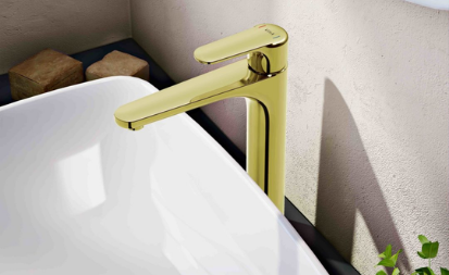 Root faucet is available in chrome, gold, copper, and brushed nickel, which means all elements of the bathroom can be coordinated for maximum impact. The hardwearing colour is applied using advanced technology that gives a resilient and beautiful finish.